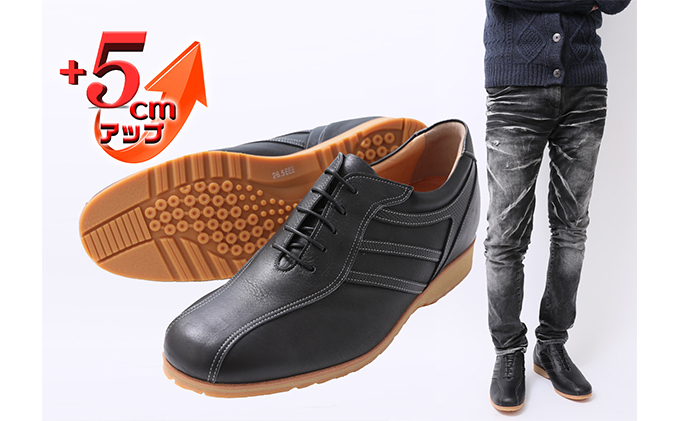 レザースニーカー 本革 カジュアルシューズ 5cmアップ シークレットスニーカー No.997 ブラック 26.0cm [№5990-7926]0323