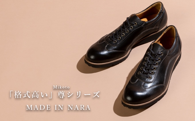 表革と中敷きに吸湿性、通気性が良くとても柔らかな鹿革を使用し足当たりがとてもソフトな履き心地。片足約290g(25.5cm片足基準)でとても軽量。鹿革は奈良県宇陀市で鞣されたものを使用し、製造は奈良県大和郡山市というメードイン奈良の逸品。見た目はスリムだがゆったりとした足入れ感が特徴。片足約290g(25.5cm片足基準)でとても軽量。サイズの目安はスニーカーのサイズから0.5cm~1cm下、革靴のサイズからは表示サイズ相応か0.5cm下。ワイズは3E相当。サイズ感はやや大きめ。