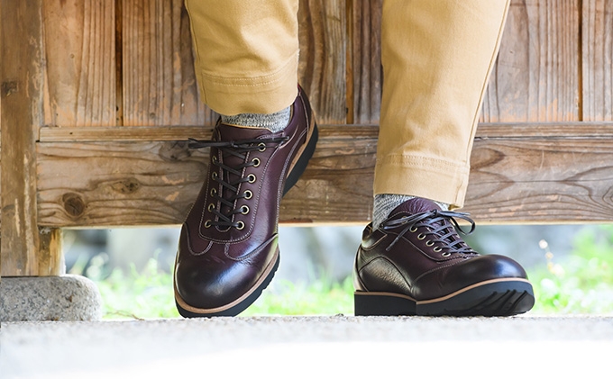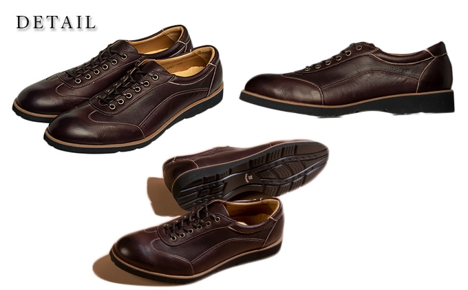 『天然皮革の中では最高級な鹿革を使用したタウンカジュアルシューズ』 表革と中敷きに吸湿性、通気性が良くとても柔らかな鹿革を使用し足当たりがとてもソフトな履き心地。片足約290g(25.5cm片足基準)でとても軽量。鹿革は奈良県宇陀市で鞣されたものを使用し、製造は奈良県大和郡山市というメードイン奈良の逸品。見た目はスリムだがゆったりとした足入れ感が特徴。片足約290g(25.5cm片足基準)でとても軽量。サイズの目安はスニーカーのサイズから0.5cm~1cm下、革靴のサイズからは表示サイズ相応か0.5cm下。ワイズは3E相当。サイズ感はやや大きめ。
