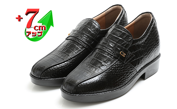 ビジネスシューズ 本革 革靴 紳士靴 牛革クロコ調スワローモカ 7cmアップ シークレットシューズ No.236 ブラック [№5990-0342]