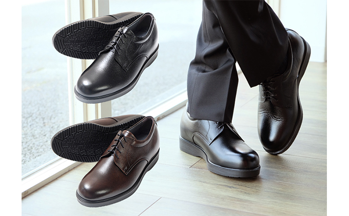 本革 ビジネスシューズ 紳士靴 外羽根プレーン 5.5cmアップ シークレットシューズ No.911 ブラック 26.5cm [№5990-8130]0350