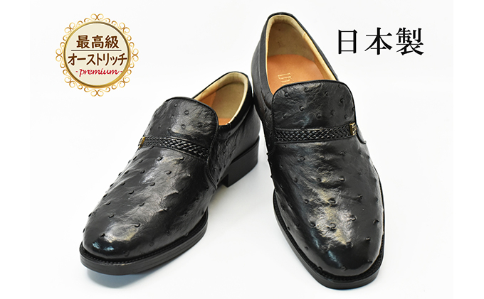 オーストリッチ革 ビジネスシューズ 革靴 本革 紳士靴 プレーン 4E ワイド No.1265 ブラック 24.5cm [№5990-8252]0368