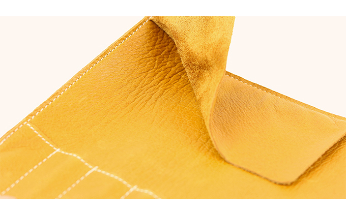 贅沢に革を二重にしているので背面からステッチが見えずとっても丈夫。