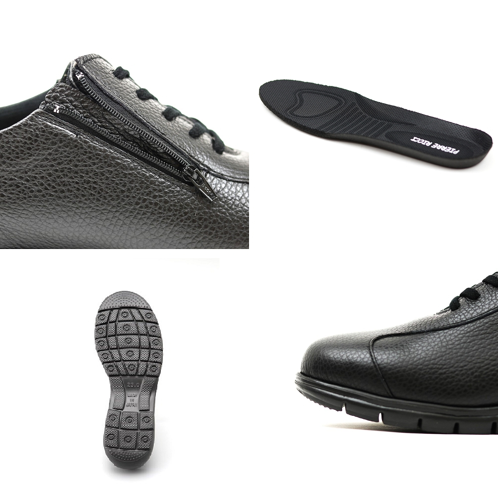 【ピエールリッチ】ファスナー付き 軽量 ソフト レザースニーカー ブラックPR-821(婦人靴) [№5990-0824]