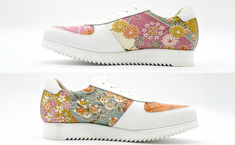 本革 着物シューズ 着物スニーカー 日本製 ユニセックス メンズ レディース 紐 レースアップ 牛革 高級正絹着物を靴にアップサイクル ホワイト No.1851S0704 [№5990-0837]