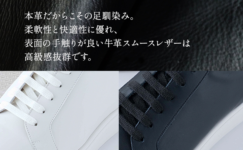 レザースニーカー 本革 メンズ 牛革スムース カジュアル 紳士靴 日本製 ローカット 外羽根 紐 レースアップ メンズシューズ No.831 ホワイト 24.0cm [№5990-4091]0912