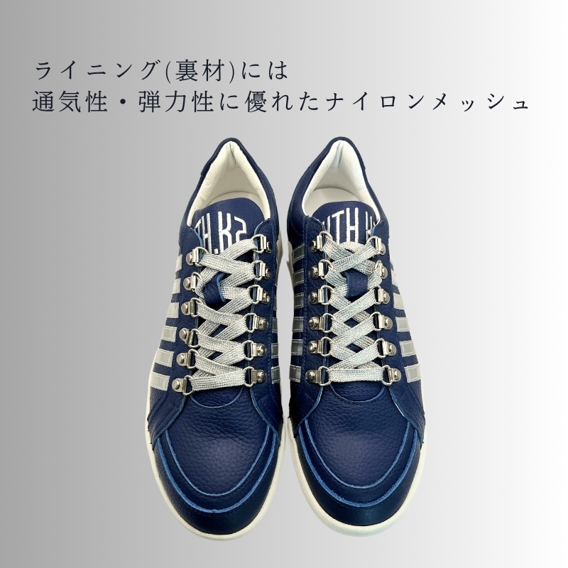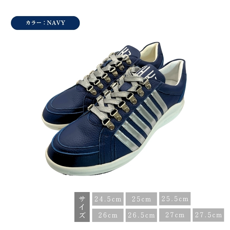 | 容量 | カラー:NAVY サイズ:24.5~27.5cm (E) 素材:牛革 + 合皮 底:ゴム 重さ:545g±2g(26.0cm 片足) |