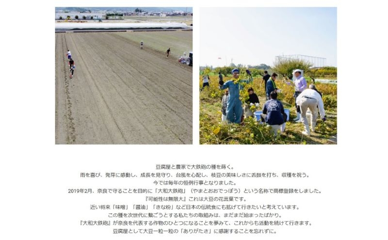 Made in NARA 植物性100%のスキンケアをお届けします。素材に誠実でありたいという想いから奈良県在来大豆大鉄砲に出会いました。