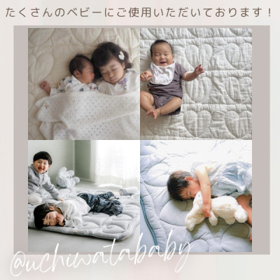 リビングや外出時など、どこにでもベビースペースを作ることができます。夏はさらっと、冬はあたたかい生地で肌掛けやブランケットとしてもお使いいただけます。