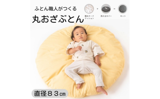 <直径83cm ふかふか丸お座布団>黄色カバー付き おしゃれ可…