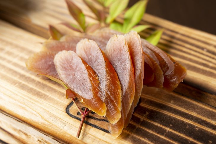 ・胡瓜(きゅうり)の奈良漬:胡瓜の青臭さの成分である『ピラジン』は、身体にこもった熱を取り除く作用や、アルコール代謝を促す働きがあるといわれており、夏バテ予防・二日酔いの際に摂りたい食材の1つです。当店では徳島県産のきゅうりにこだわり、使用しております。