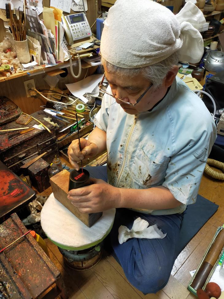 この特製オリジナル商品は、京都漆工芸協会理事である柴田玄妙斎師匠が手掛けており、素材や製法すべてにこだわった逸品です。また今井町の象徴である「駒繋ぎ」を金粉であしらいました。