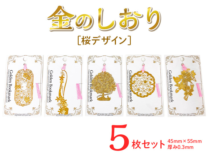 チョイスPayポイントと交換できる品 日本の桜を日本の精密技術で表現したブックマークです 桜デザイン金のしおり(5枚セット) ≪ブックマーク しおり フォトエッチング加工 桜≫※着日指定不可