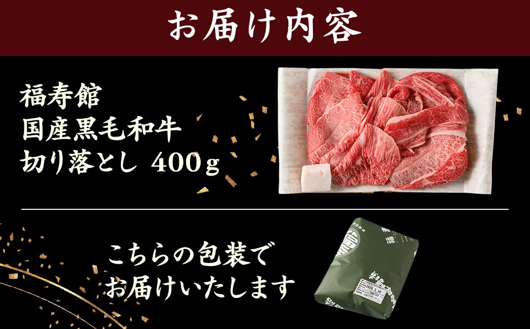 | 容量 | 国産黒毛和牛 切り落とし400g |
