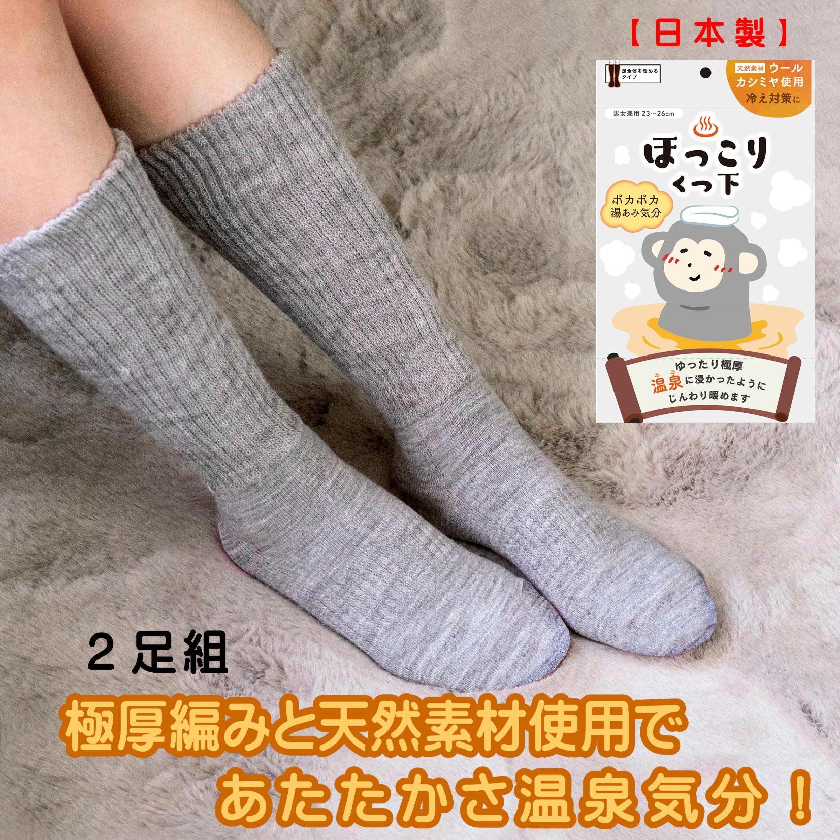 チョイスPayポイントと交換できる品 お肌に優しい天然素材使用&極厚リブ編みであったか温泉気分♪ ふわポカ湯あみ気分!温泉ほっこりソックス2足セット
