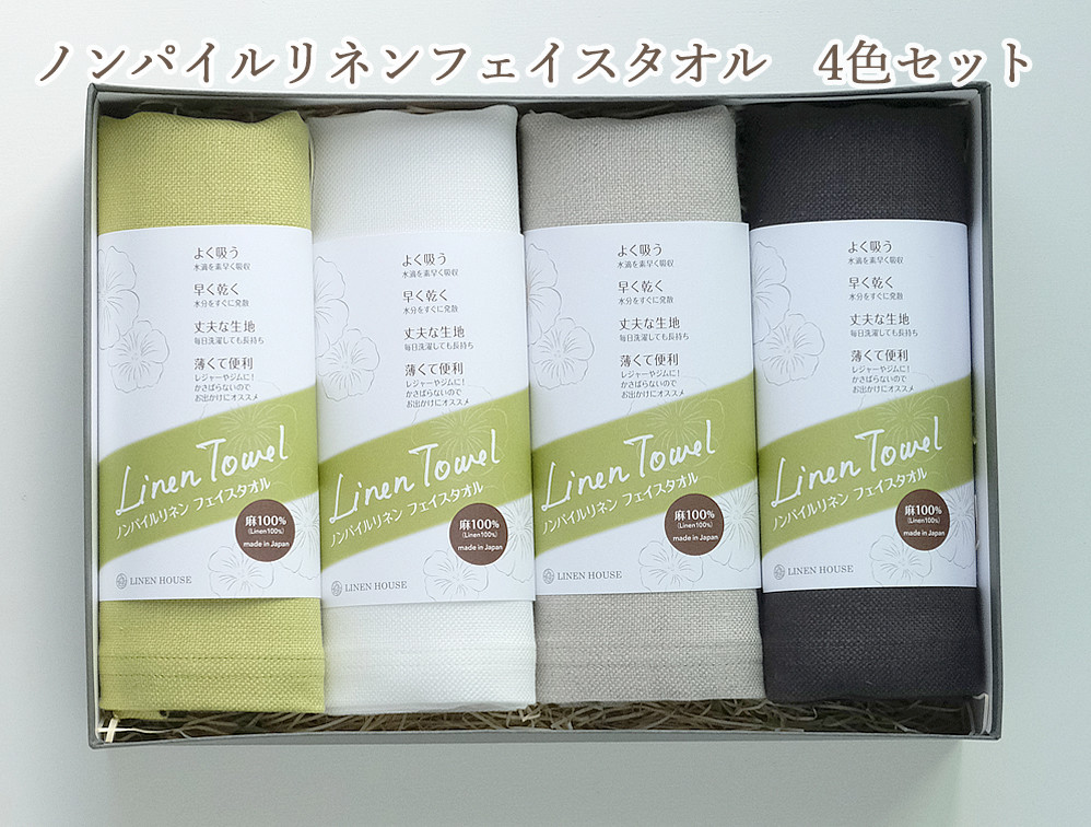 コンパクトなタオルは、ジム通いやご旅行のバッグにコンパクトに納まり大変便利です。 C-39.【吸水速乾性に優れたコンパクトなタオル】 リネンフェイスタオル 4色セット