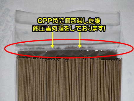 おそばは、OPP袋に入れ上部を熱圧着加工しております。