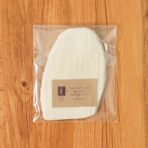 外側面がシルク100%・内綿がウール100%の天然素材100%足底パッドです。
