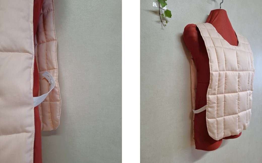 そのご要望にお応えすべく、試行錯誤を重ね、このたび前身頃にも温もりを感じられるベストタイプとして、ようやく製品化することができました。