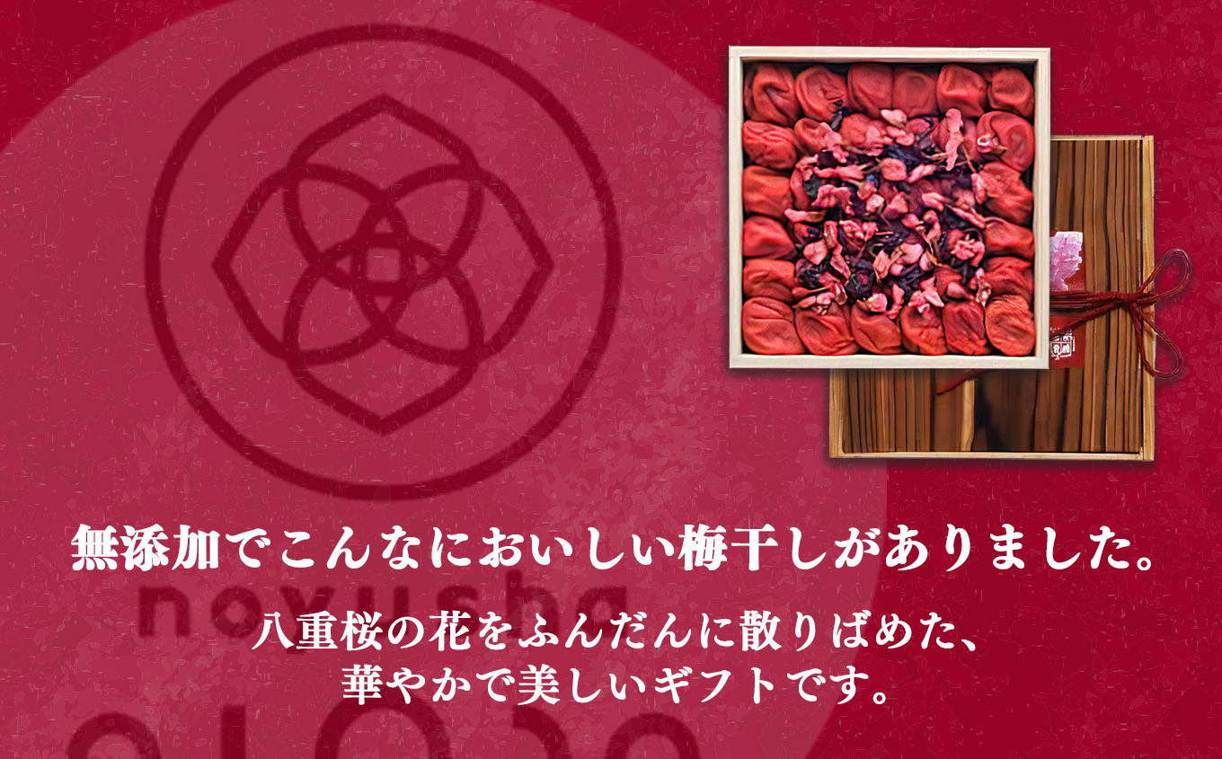 契約農業者が栽培した安心の梅を昔ながらの赤しそと厳選した塩だけで漬け込んだ「むかし梅干」に、吉野の山の桜の塩漬けを散りばめた華やかな梅干。