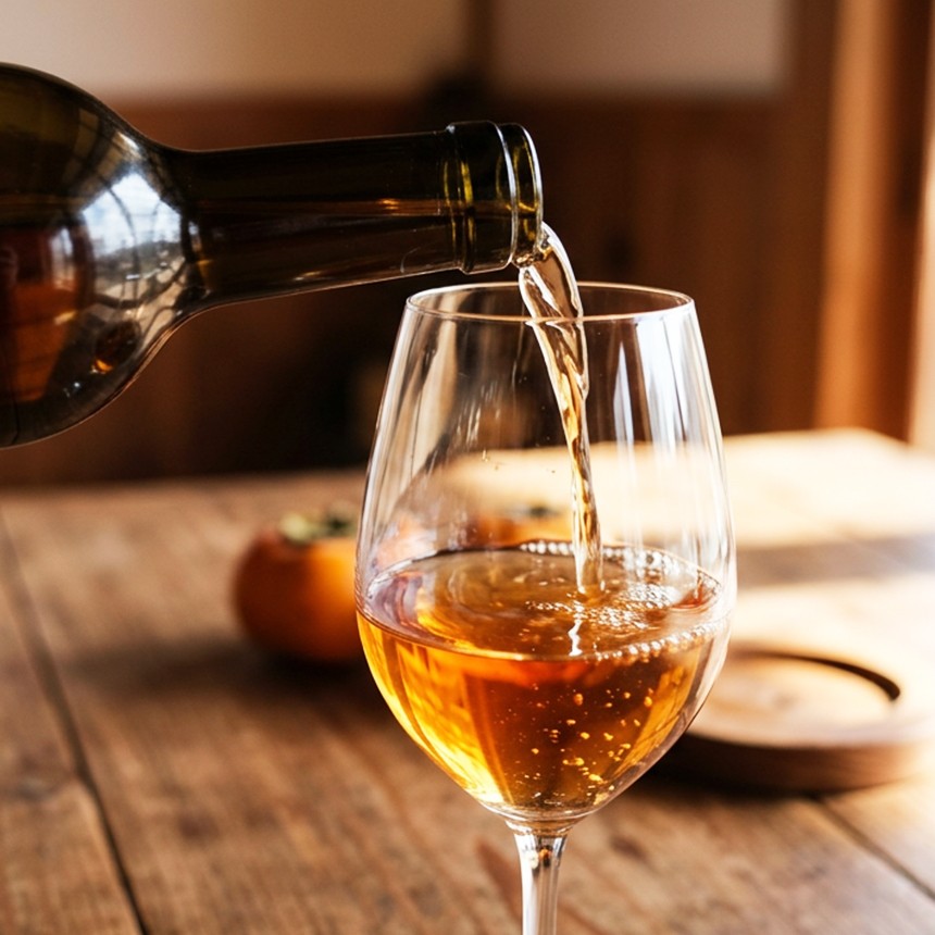 白ワインベースでほんの少しの甘みと、柿ならではの香りと酸味・渋みがあり、魚料理だけでなく肉料理ともお楽しみ頂けます。