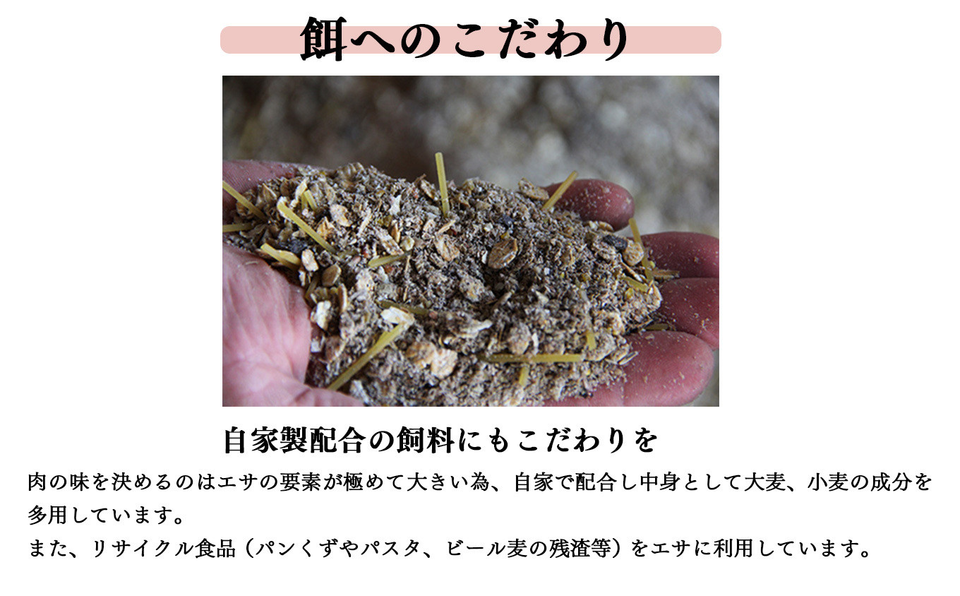通常より1~1.5ヶ月長く飼育しており、きめ細かい肉質を持つ黒豚と、霜降りの肉質を持つ茶豚をかけ合わせることで、 脂のしまった甘くてきめの細かい「ばあく豚」になります。