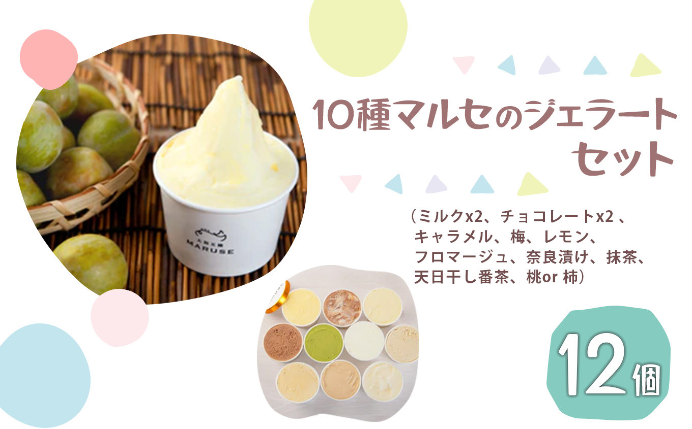大和五條の地でつくる採れたてジェラート! 獲れたて フルーツ 使用 マルセのジェラート セット 10種 12個 | アイス ジェラート シャーベット ミルク チョコレート フロマージュ 奈良漬け レモン キャラメル チョコ 梅 番茶 抹茶 柿 桃 奈良県 五條市 くだもの 果物 果実 冷凍 ひんやり スイーツ おやつ 天日干し 番茶 マルセグループ株式会社 アソート たっぷり チーズ 甘い グリーンティー ピーチ デザート