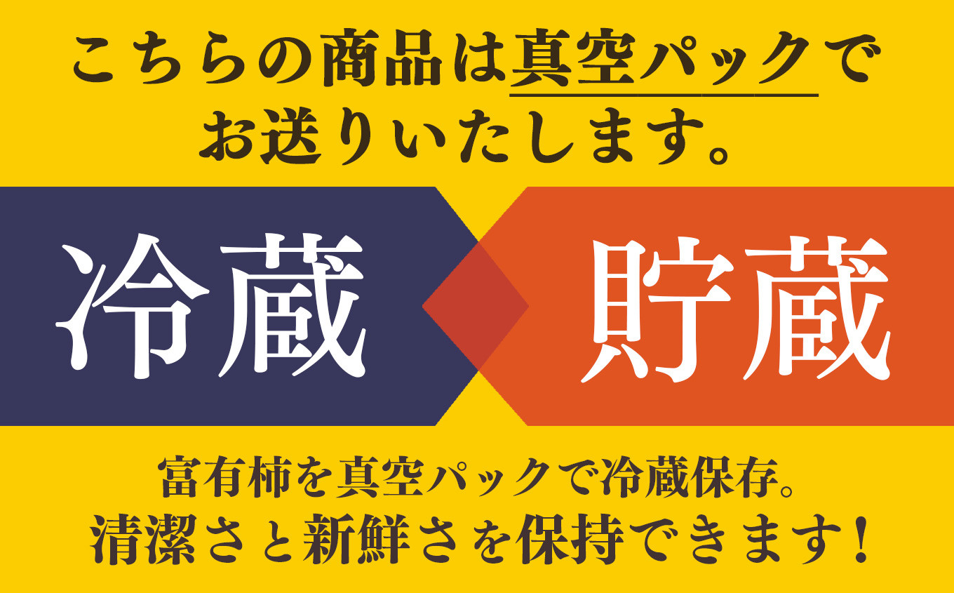 美味しい富有柿を少しでも長い期間食べていただきたく真空パックにしているため、清潔さと新鮮さを保持できています。