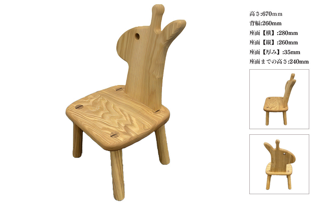 こちらの子ども用いすは、奈良県産スギ材を使用して作られており、背もたれがかわいい動物の顔になっています。