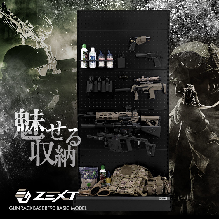 ZEXT ガンラックベースBF90 ベーシックモデル / コスティック ガンスタンド エアガン 収納 棚 有孔ボード ライフル ハンドガン サバゲー ミリタリー ディスプレイ 奈良県 御所市