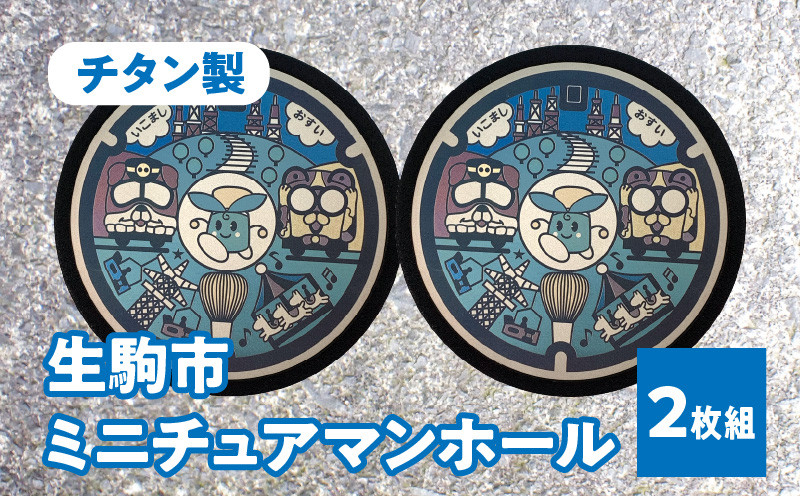 チタン製ミニチュアマンホール 『生駒市』 2枚組 奈良県 生駒市 送料無料