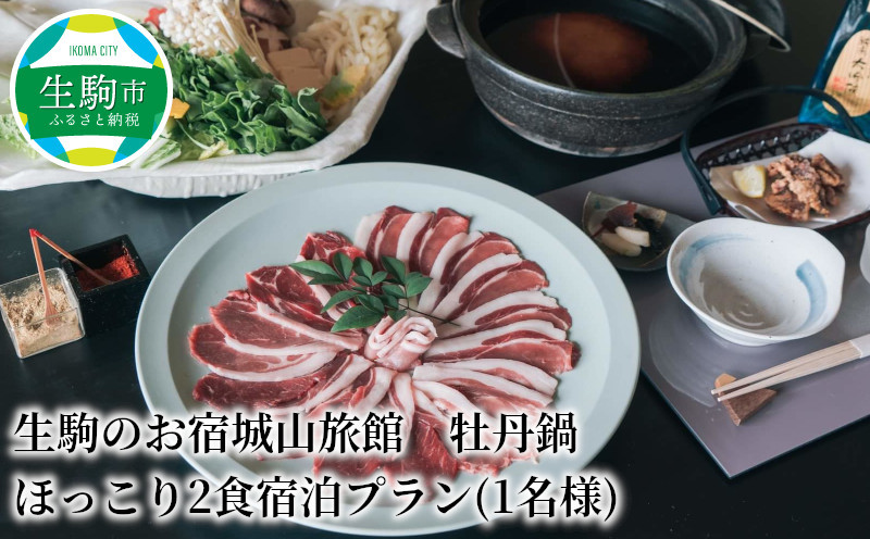 天然猪使用 ジビエ牡丹鍋をお楽しみいただけます! 生駒のお宿城山旅館生駒市 ほっこり2食宿泊プラン 1名様 生駒のお宿城山旅館 牡丹鍋 天然猪使用 ジビエ 免疫アップ 宿泊券 夕食 朝食 和定食 茶粥 鹿肉竜田揚げ よもぎ染商品おみくじチャーム 澄んだ空気 夜景 思い出 旅行 送料無料