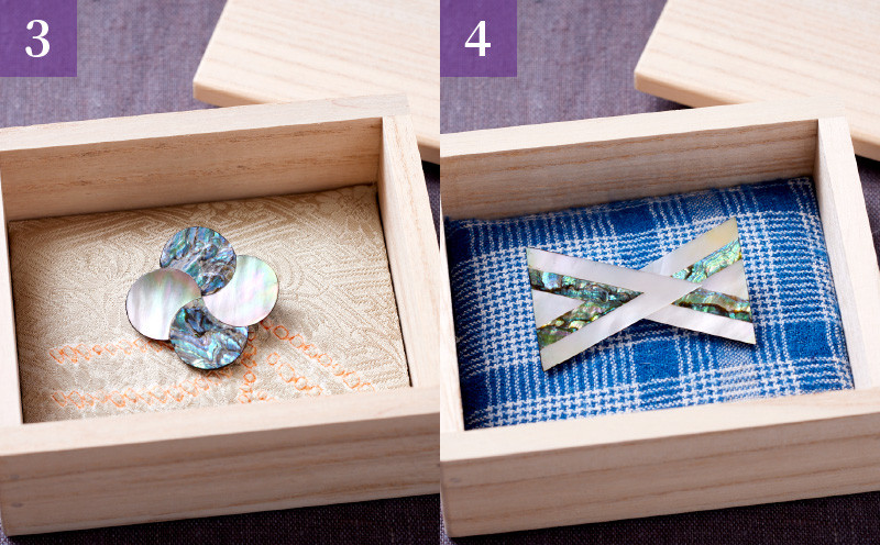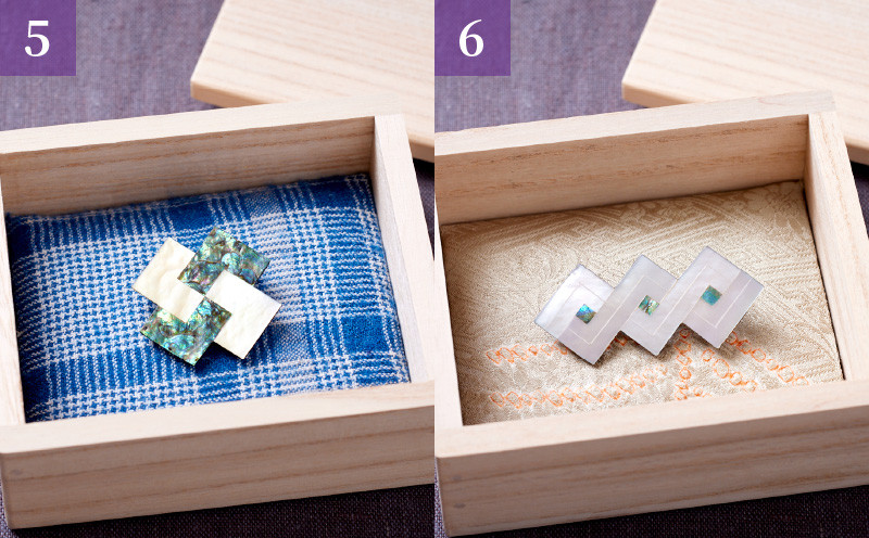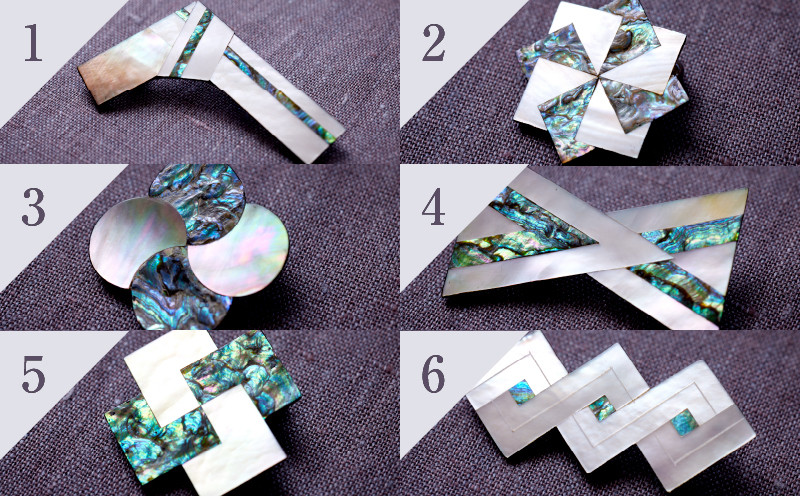 奈良時代、正倉院に蔵められている螺鈿の技法でモダンなブローチを作りました。