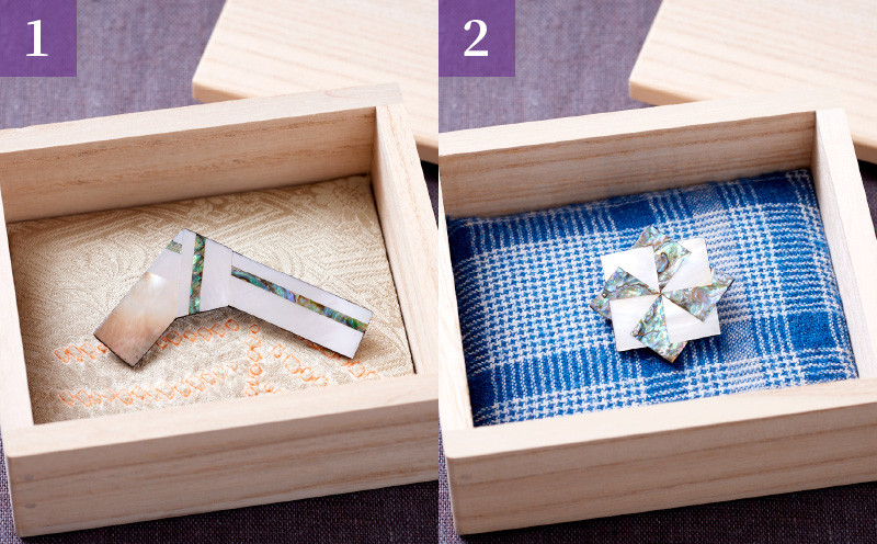 ~世界に二つとないブローチ~ 螺鈿ブローチ 世界に二つとない ブローチ 螺鈿 螺鈿ブローチ 漆芸螺鈿 1ヶ 桐箱入り 選べる デザイン 全て オリジナル 個性豊か 一点もの 自然素材 アクセサリー 軽い 工芸品 奈良県 生駒市 送料無料