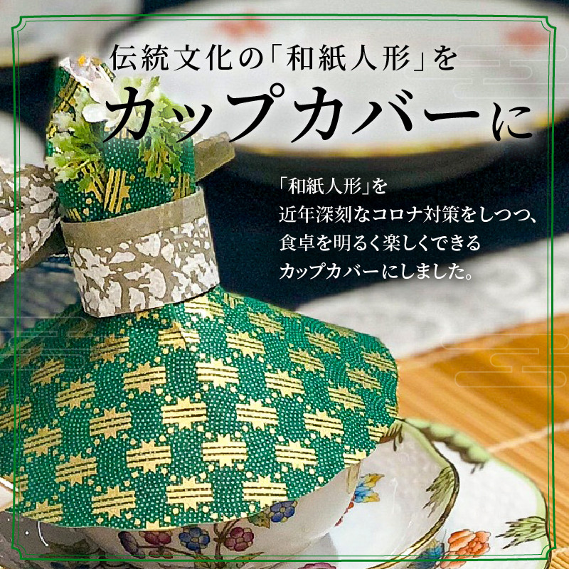 日本の伝統文化で食卓を明るく!!楽しく!!コロナ対策‼ 華やかな食卓で笑顔を飛沫感染テーブルウェアカバー 緑系 着物ドールリウムⓇ「華姫Ⓡ」 テーブルウェアカバー カップカバー 飛沫防止 食器 蓋 着物ドールリウム 華姫 緑系 和紙 漆喰和紙 抗菌 消臭 調湿効果 華やかな食卓 笑顔 食卓を明るく楽しく テーブル映え 送料無料 お取り寄せ 生駒市