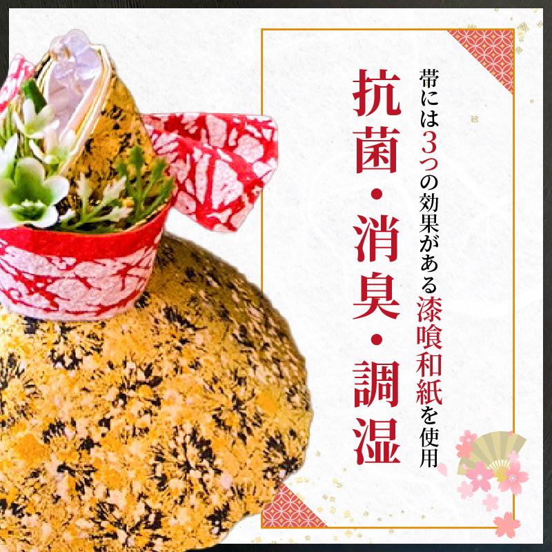 食卓を明るく楽しくできるカップカバーとして帯には抗菌・消臭・調湿効果のある漆喰和紙を使用しています。