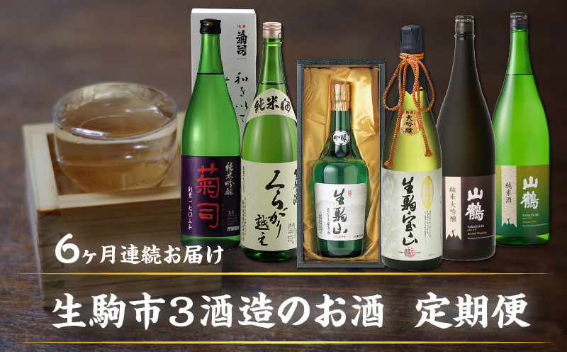 生駒市3酒造のお酒 6回定期便 日本酒 定期便 6回 6ヶ月 1.8L 720ml 計 6本 毎月 1本 お届け 菊司 くらがり越え 生駒山 生駒宝山 純米大吟醸(黒) 純米吟醸 純米酒 吟醸酒 純米大吟醸 辛口 やや辛口 飲み比べ お酒 アルコール 飲料 お取り寄せ 奈良県 生駒市 送料無料