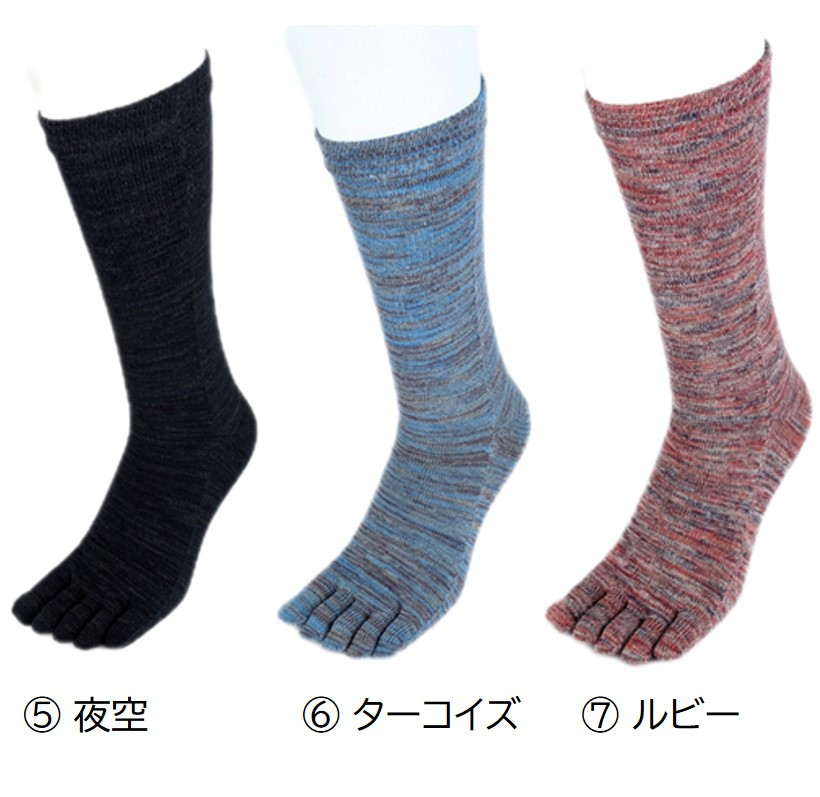 ミックスカラーの靴下は、同一柄が二つとないオンリーワン商品です。 5本指ソックス・クルー(レギュラー)「雅(MIYABI)」25-27cm(M) 3足セット [2851]