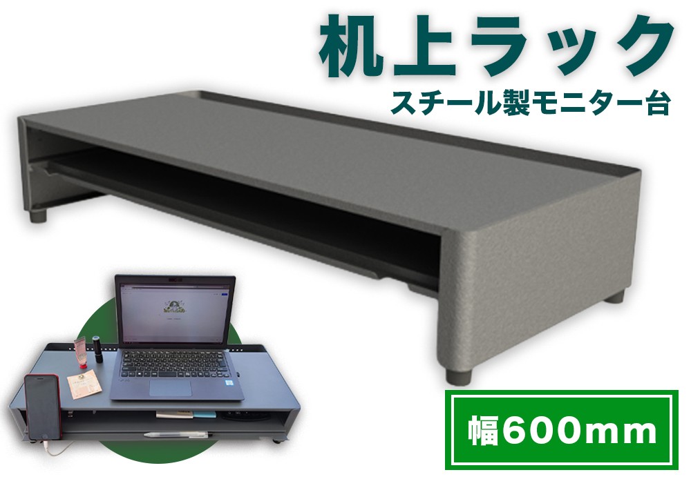 DS600G 机上ラック 幅600mm 日本製 スチール モニター台 引き出し付 一ノ坪製作所 グレー [2236]