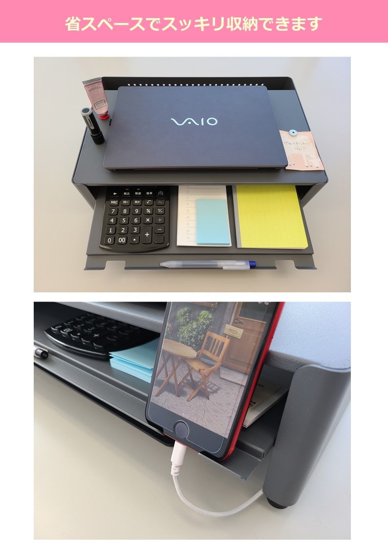 同シリーズの幅600mm机上ラックと併用すると幅広い使い方ができ、あなただけのワークスペースが広がります。