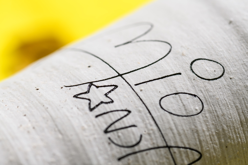 信楽焼カップのサインは印刷ではなく全て手彫り彫刻。(サンドブラスト彫刻)
