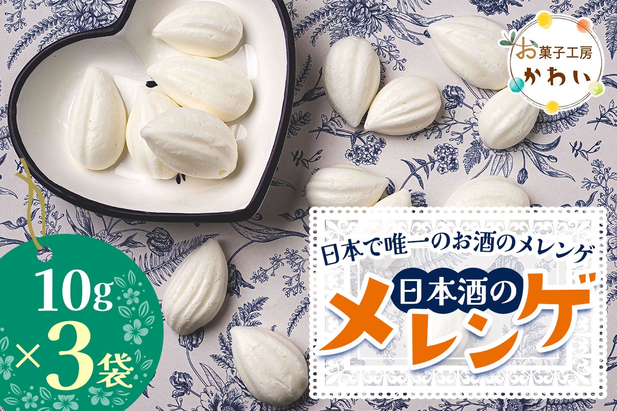 香芝市の認定品『kashibaplus (香芝プラス)』 日本酒のメレンゲ 計30g (10g×3袋)《日本で唯一のお酒のメレンゲ》|メレンゲ お酒のスイーツ 焼き菓子 手土産 ギフト [3070]