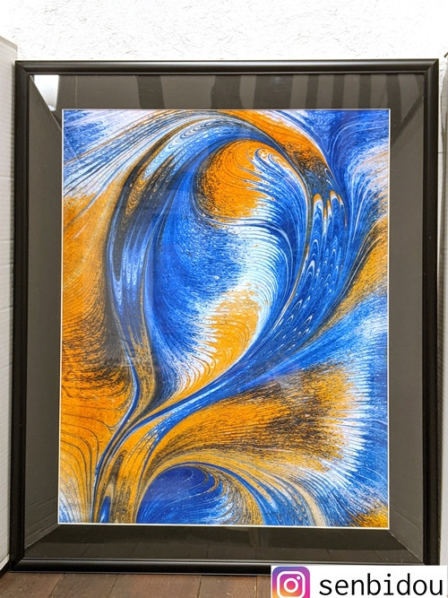 墨流し染 額装 孔雀の舞 (G04) / 染美堂 一点物 絹 シルク 現代風 アート インテリア 朱雀 抽象的 奈良県 葛城市【snbd007】