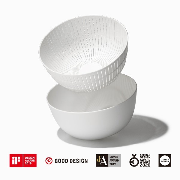 「ふっくら」「みずみずしく」米を炊き上げる為に、米とぎにちょうどいい水切れと弾力性にこだわったプラスチック製のザルとボウルです。