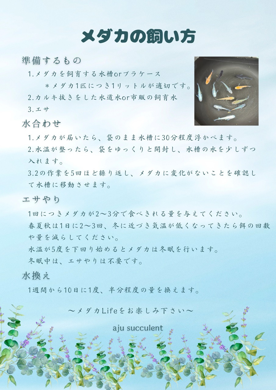 ・必ず到着後すぐにメダカの状態をご確認ください。生体が万が一死着の場合は未開封のまま