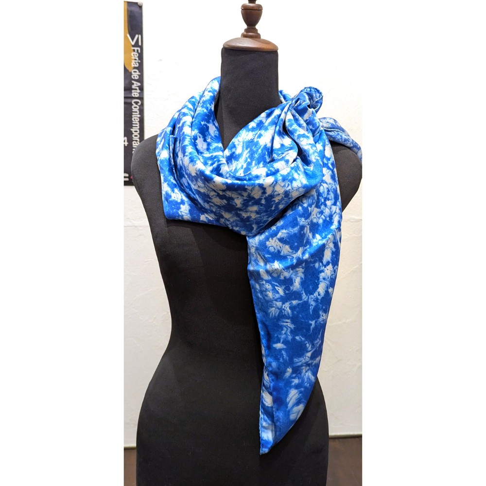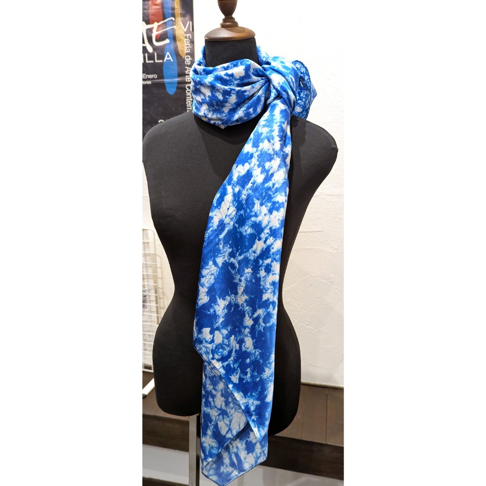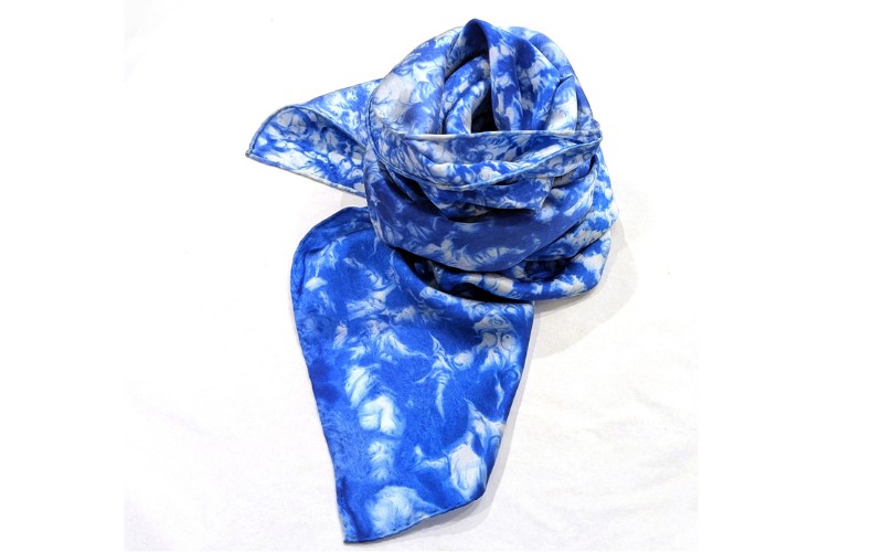 現代風の墨流し技法で絹に染め、その生地で作ったスカーフです。