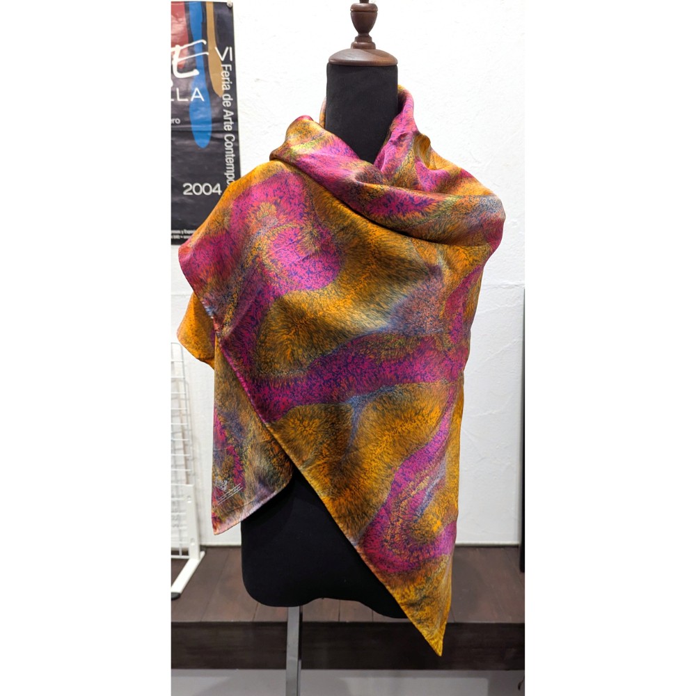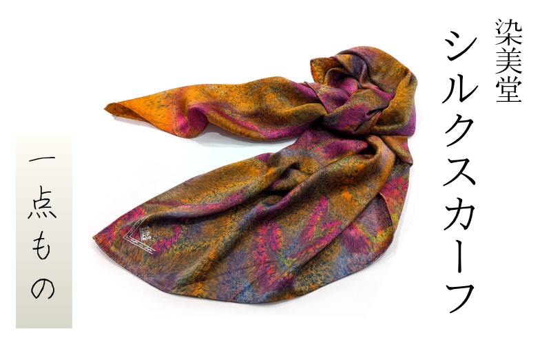 世界にひとつだけ。現代墨流しが描く、絹のアートスカーフ。 墨流し染 シルク スカーフ (秋色微粒子) / 染美堂 一点物 絹 現代風 アート サテン織 贈り物 上品 奈良県 葛城市 【snbd017】
