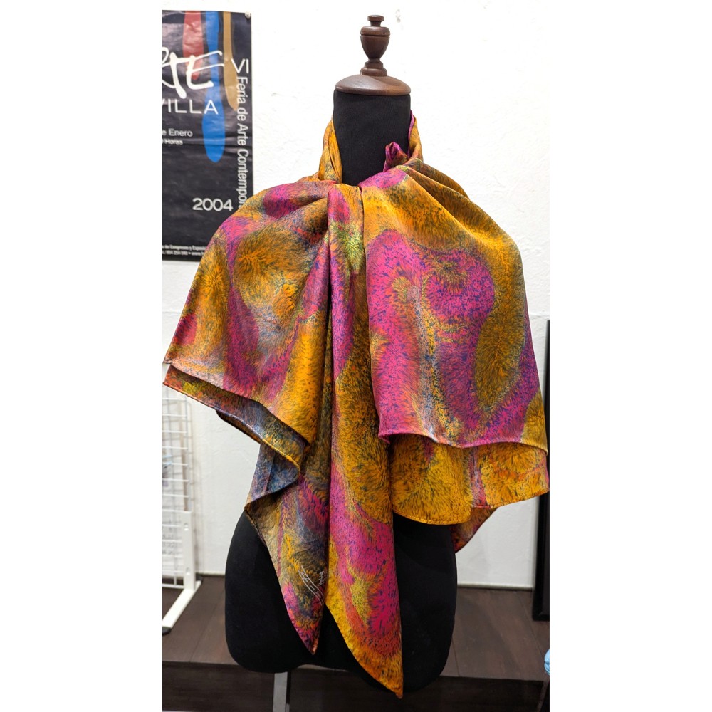 現代風の墨流し技法で絹に染め、その生地で作ったスカーフです。