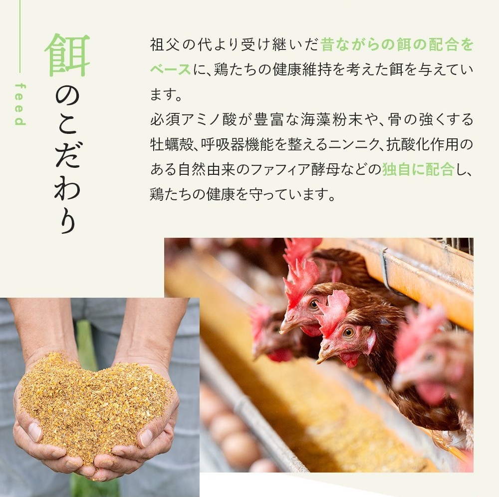 これまで積み重ねてきた経験と、お客様に安心しておいしく食べていただける卵を届けたいという強い思いが、この「けはやたまご」に詰まっています。