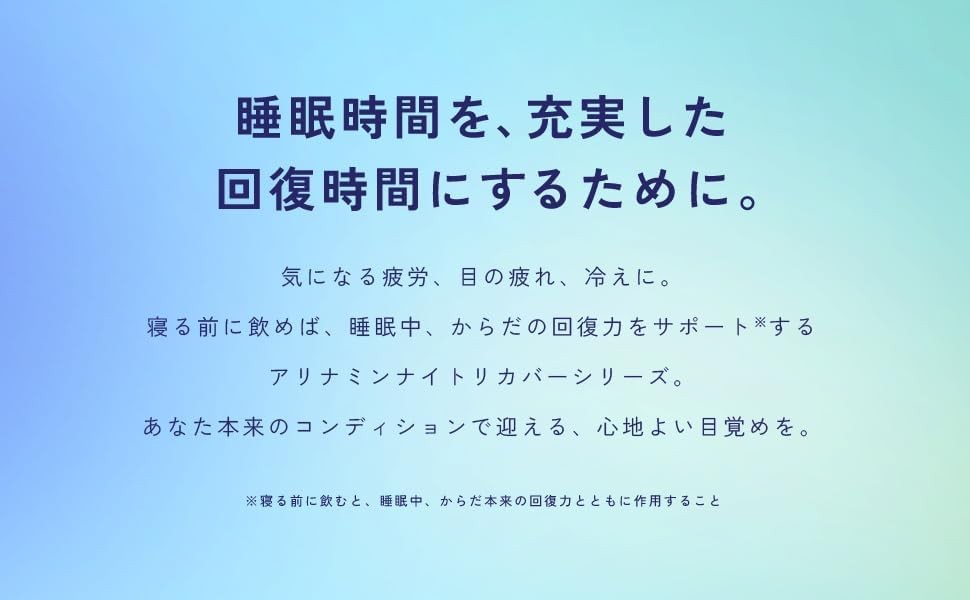 Point3 寝る前に飲むと、睡眠中、カラダ本来の回復力をサポート。朝、自分らしいコンディションで気持ちの良い目覚めへ。